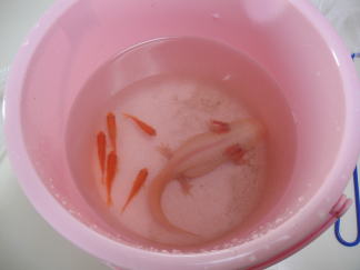 餌は小赤、キャット何でも食べます。 |