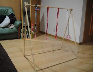 息子が3ヶ月程の時に作った遊び物が成長してもう使えなくなったので何か再利用できないかと考えたところ「細い丸棒」??「ベビーゲート」!!