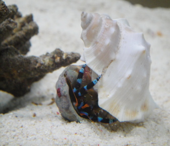黒とオレンジと青の色が入ったやどかりです。