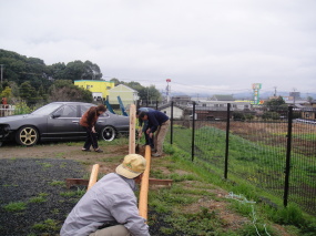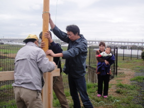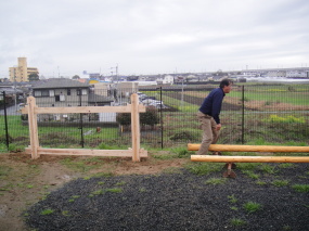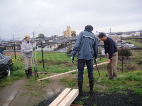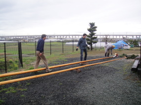 寸法を図って穴掘り。