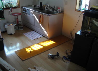 次は水槽の底床となるコンパネの