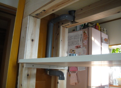 オーバーフローの配管をします。 |