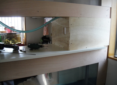 オーバーフロー水槽ですので配管の通り道を作らなければなりません。 |