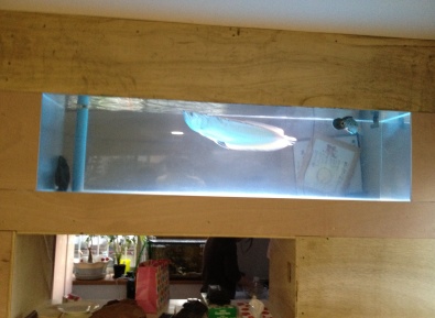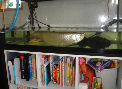 アロワナの成長に伴い、現在の水槽のサイズ(90p)では狭くなってきました。