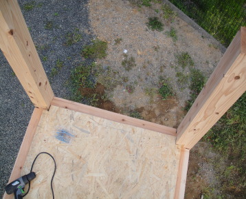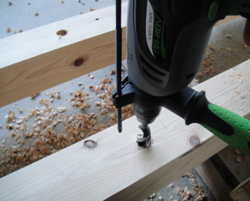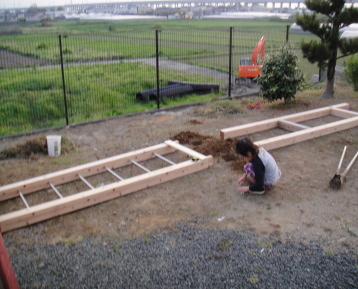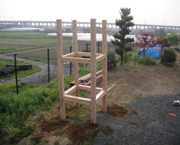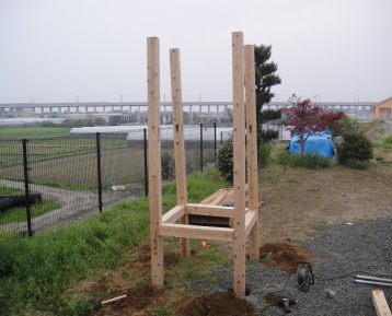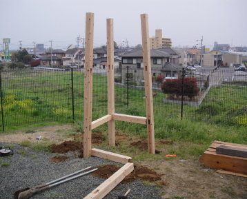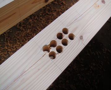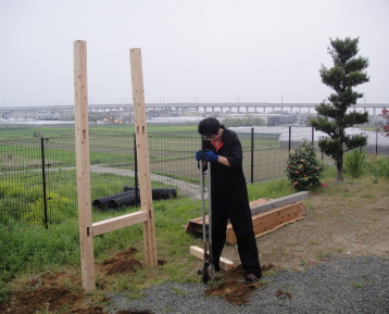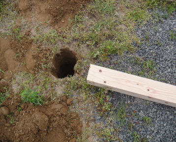 土台の支柱を埋め込む穴を開けます。
