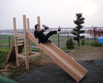 滑り台の部分も綺麗にサンダーでバリを取りツルツルにします。 |