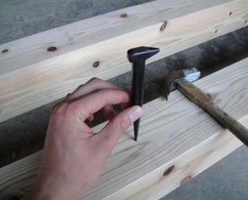 うんていの丸棒をはめ込む穴を決定しポンチで目印をつけます。 |