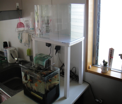 水槽の横にフィルターもあり見た目が大変悪かったです。