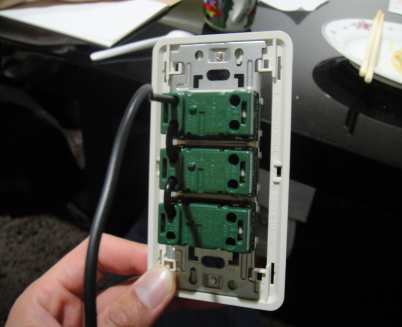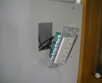 先ほど張ったベニヤに穴を開けて装着